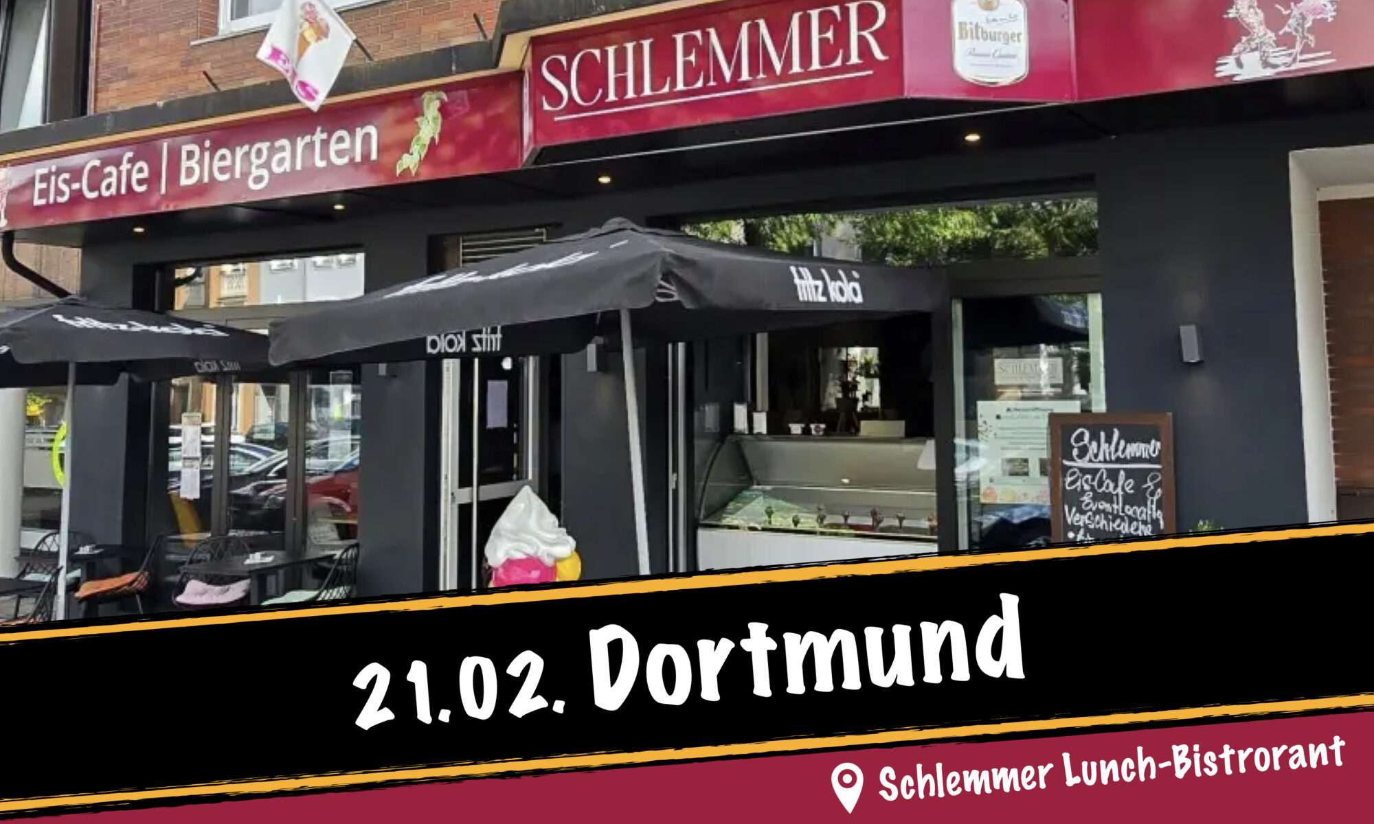 Der Schlemmer-Grill ist 2025 in die Nachbarlocation, ins ehemalige „Herr Bennewitz“ umgezogen. Hier waren wir bereits 2022 zu Gast. Mit mittlerweile nun neuem Namen und zusätzlichem Eiscafé startet das Schlemmer Lunch Bistro ab 2026 auch den Versuch zu musikalischen Veranstaltungen. Das lassen wir uns nicht zweimal sagen, und machen gerne den Anfang.