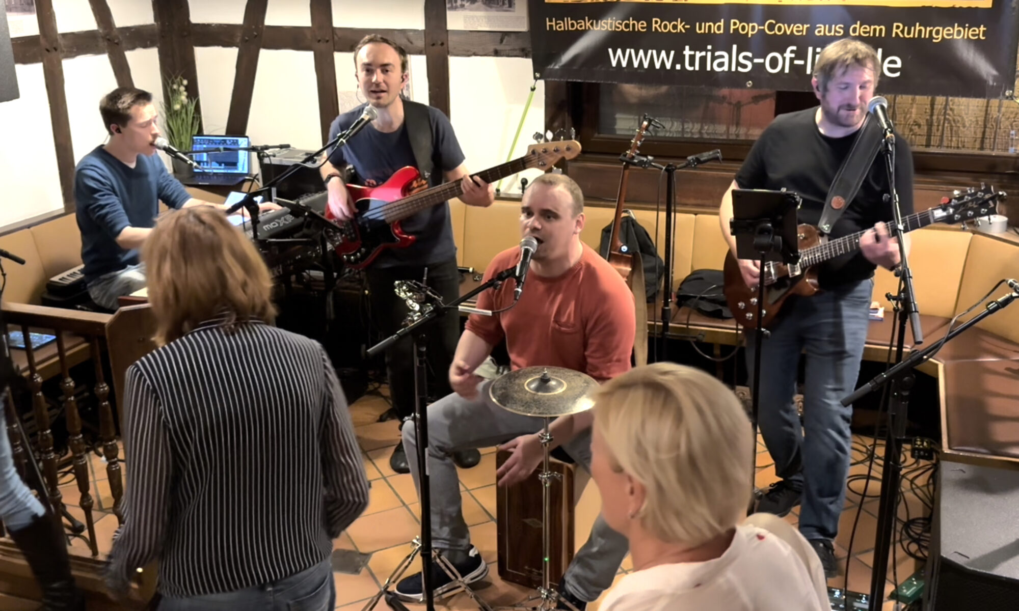 Neben uns waren noch viele andere auf die Idee gekommen, einen Abend in der „Keule“ zu verbringen. Wie ein paar Tage zuvor hatten wir ein sehr aufmerksames Publikum, dass auch nach der Pause trotz des Termins unter der Woche noch zahlreich bis zum Schluss geblieben ist. Ein Geburtstagskind hatte uns beim Pannekaukenfest gehört und kurzerhand die Feierlichkeiten zu unserem Konzert verlegt, eine große Ehre. Manche wollten uns am Schluss gar nicht mehr von der Bühne lassen, besser hätte sich wohl keiner den Abschluss von 2025 vorstellen können.